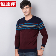 男式羊毛衫鸡心领秋冬中年男V领针织衫100%纯羊毛保暖毛衣